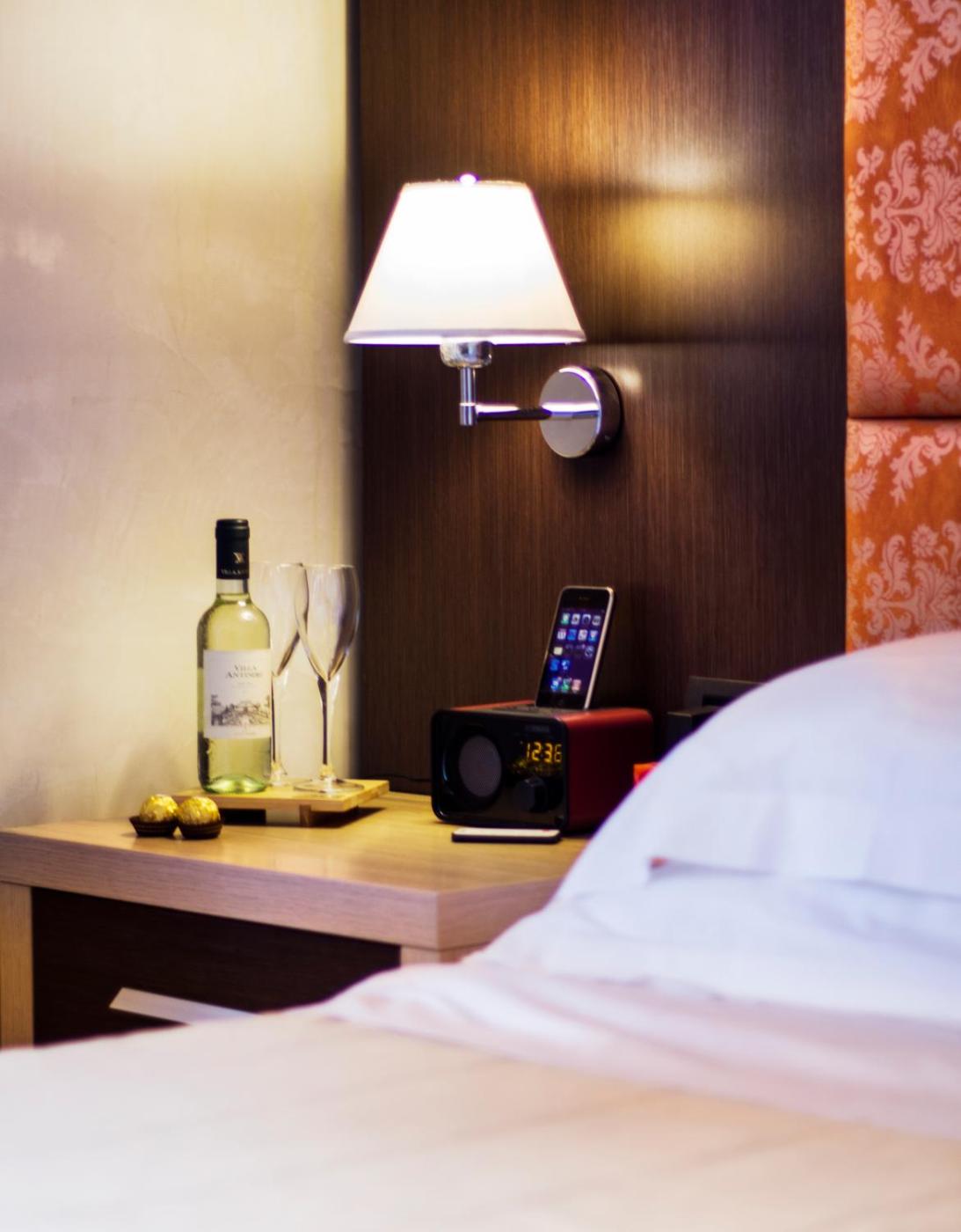 Camera Matrimoniale Deluxe. Camera matrimoniale dotata di bagno privato con doccia,di cortesia, bidet e asciugacapelli. Questa sistemazione climatizzata vista città presenta una TV via cavo a schermo piatto, un ingresso indipendente, pareti insonorizzate e unper la preparazione di tè e caffè. Lalloggio dispone di 1 letto. ;
